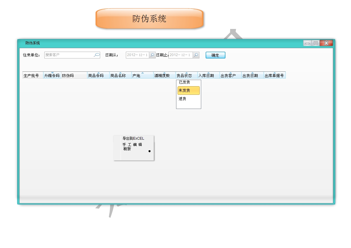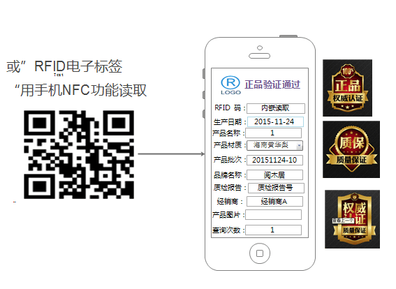 在每瓶酒上貼上自定義條形碼或者RFID電子標(biāo)簽,,并把內(nèi)部自定義條形碼或者RFID電子標(biāo)簽ID號(hào)數(shù)據(jù)錄入一統(tǒng)公司總部系統(tǒng),在各個(gè)加盟店都配置一臺(tái)專(zhuān)用防偽查詢(xún)條碼掃描器或RFID讀卡器,這樣客戶(hù)在購(gòu)買(mǎi)完...