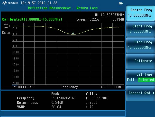 RFID無源標(biāo)簽在封裝好后,只能采用非接觸法測量其諧振頻率。非接觸法測量實(shí)質(zhì)上是反射測量,通過測量反射參數(shù)S ,找到S最大負(fù)峰值對應(yīng)的頻率值,就是標(biāo)簽的諧振。詳情咨詢熱線:020-29864643